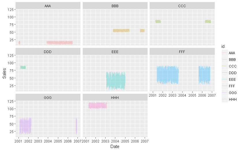 df <- data.frame(id , Date, Sales)