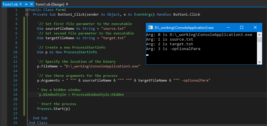 p.Arguments = " """ & sourceFileName & """ """ & targetFileName & """ -optionalPara"