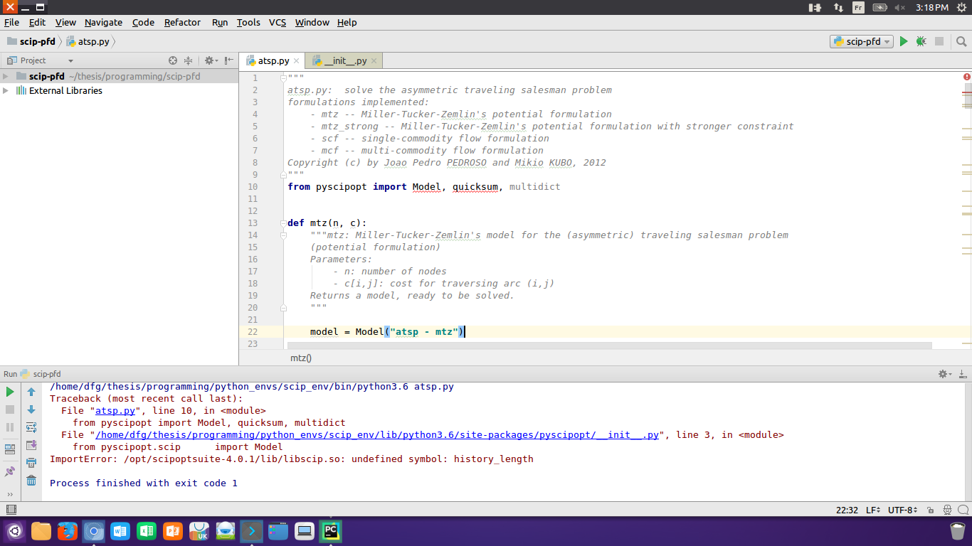 错误:找不到libscip.so我试图运行github中提供的'atsp.py‘示例,但遇到了一个错误: