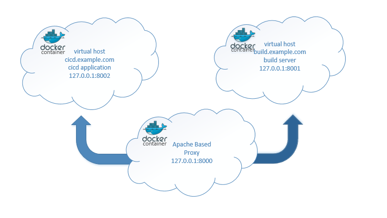 一个Docker容器充当在单个Docker容器中运行的其他web应用程序的虚拟主机代理。(我要补充的是,我并不擅长配置服务器或网络。)