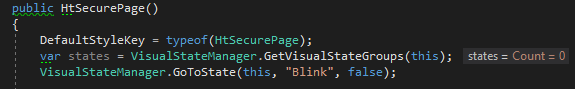 states = 0VisualStateManager.GoToState(this, "Blink", false); 之后,状态发生了更改!!我只想在XAML Style SecurePage 的定义中定义状态,然后在任何派生类中进入状态!