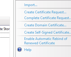 在服务器上,转到IIS部件并选择“服务器证书”,然后单击右侧的“创建新证书”。
