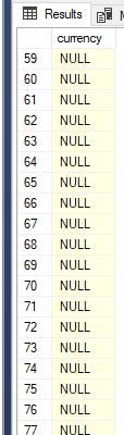 FROM #TempCurrencyTable我得到一个空值,似乎无法得到头值。